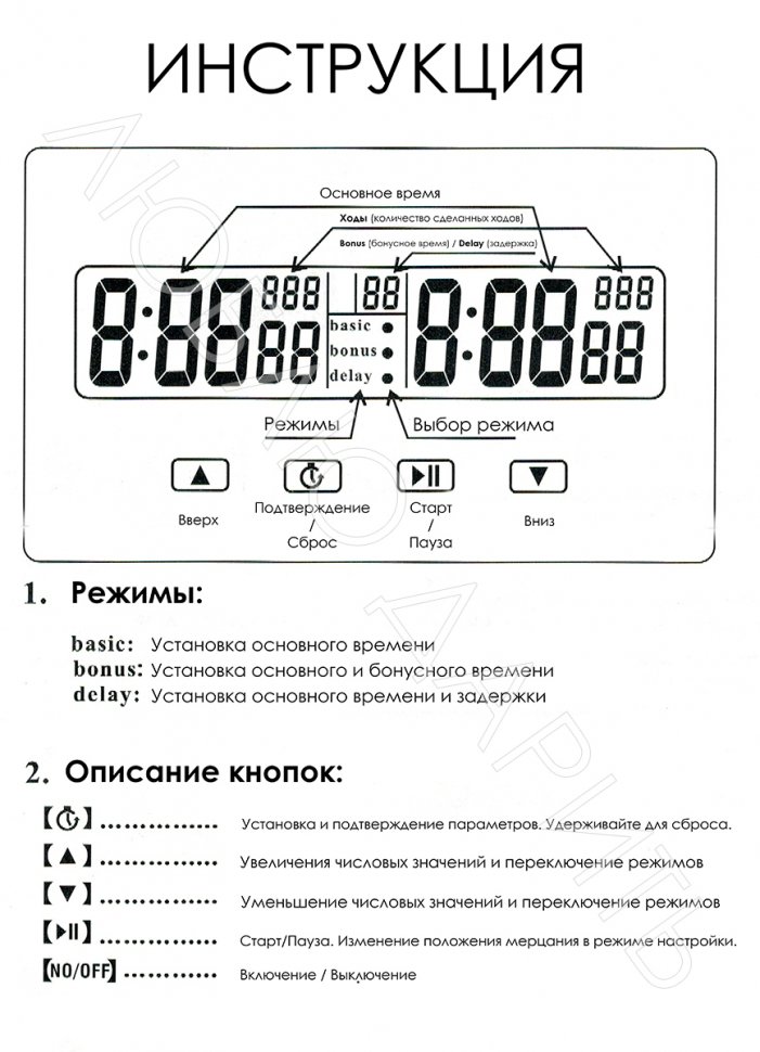 Инструкция Таймер шахматный, Электронные шахматные часы для шахмат